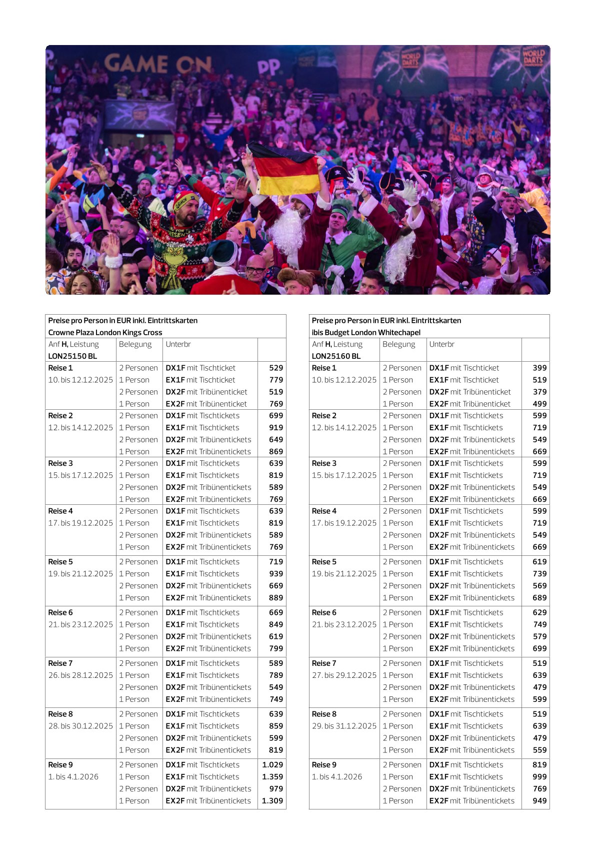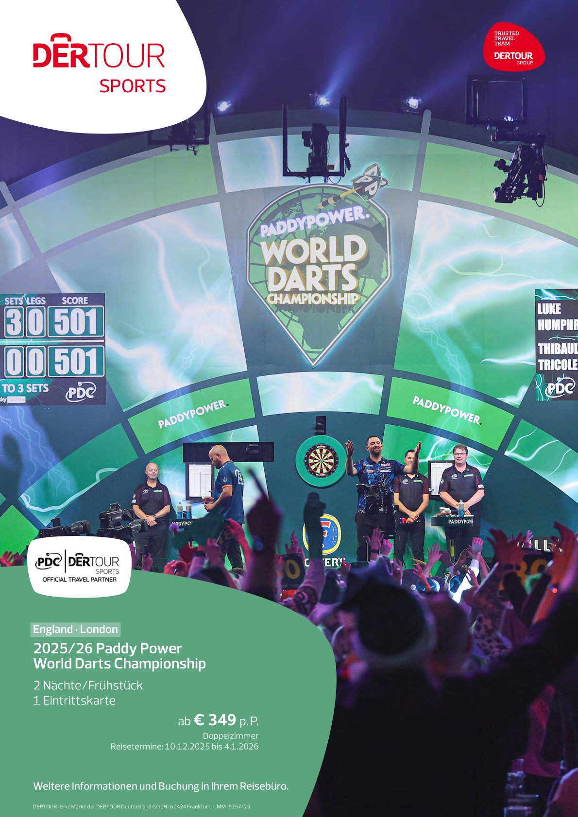 Verrücket Kostüme, eine ausgelassene Stimmung, viele Überraschungen, fantastische Siege und beeindruckende Leistungen der Darts Spieler sind garantiert.