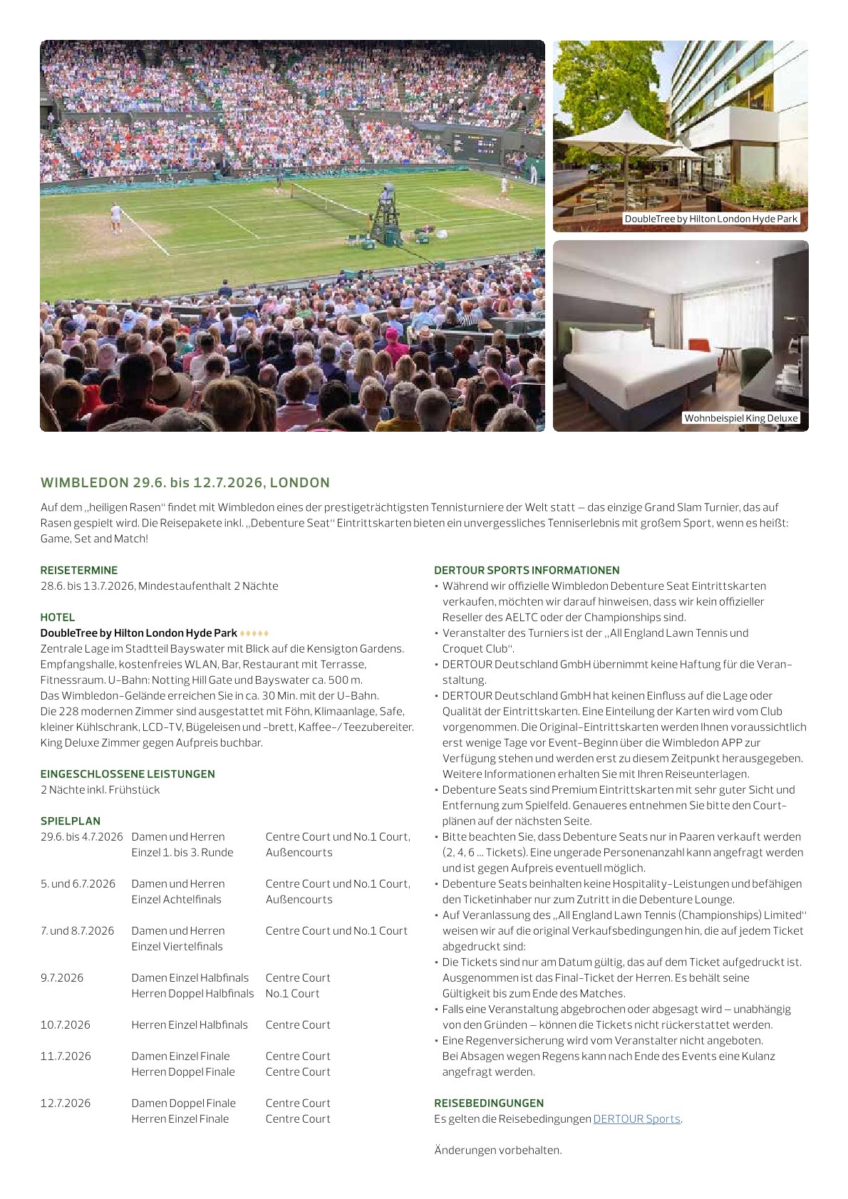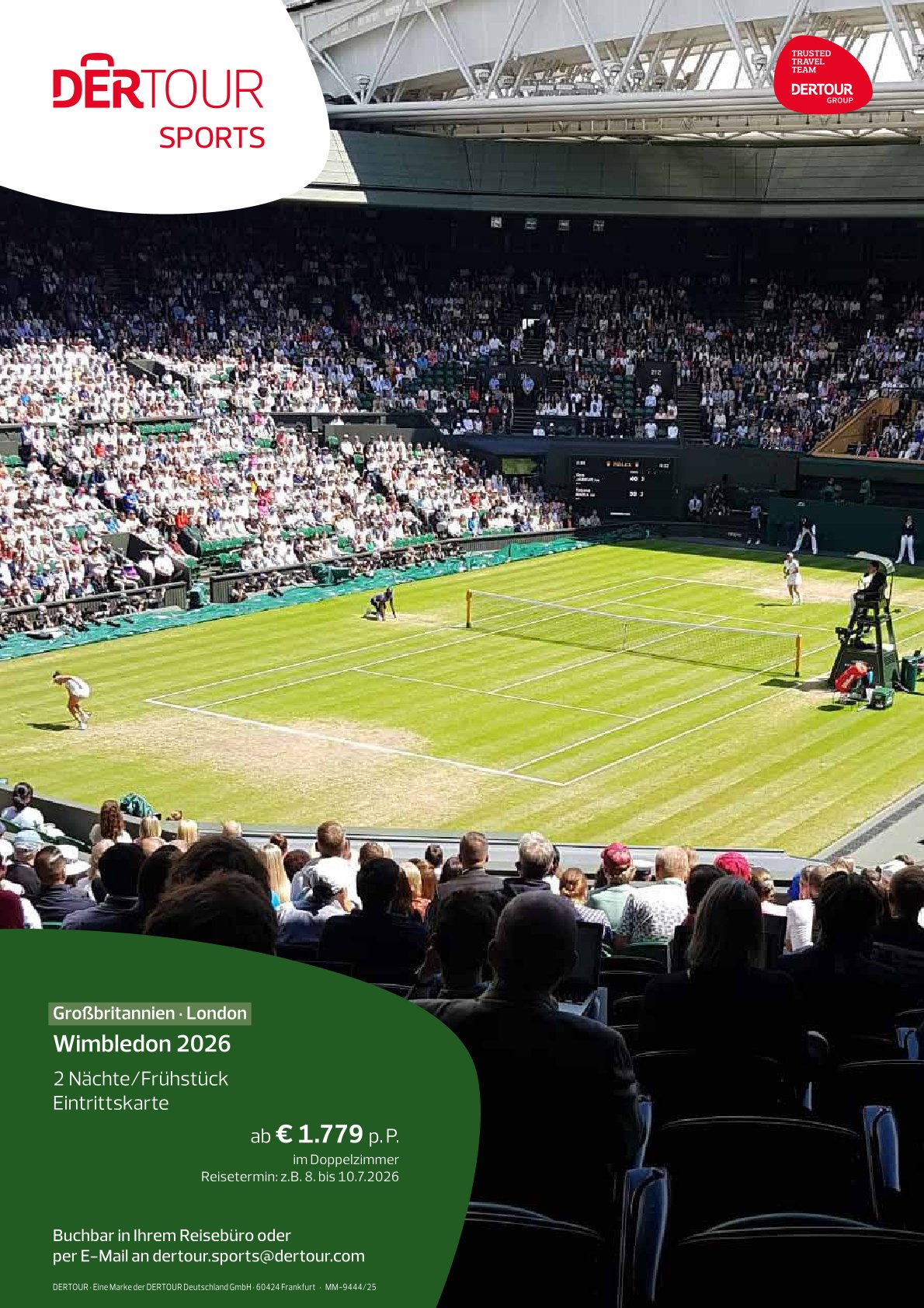 Wir bringen Dich zu einem der bedeutendsten Sportevents der Welt – inklusive sorgfältig ausgewählter Hotels, Ticketoptionen für die begehrten Matches und, wenn Du möchtest, zusätzlichen Erlebnissen rund um London. Egal ob als Premiere oder als Wiederholung deines Wimbledon-Abenteuers: